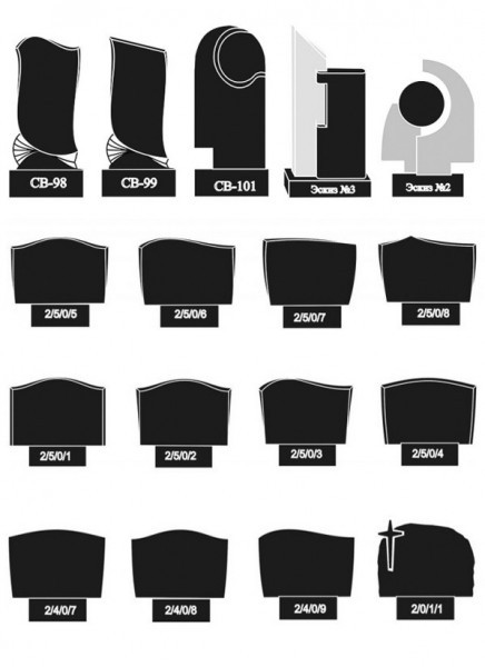 В предлагаемых нами формах памятников вы можете найти и стандартный тип прямоугольной формы с различным видом обработки краев, и более сложные фигуры, включающие в себя различные декоративные элементы, придающие надгробию рельефность и объем, а также расположенный в различных частях памятника православный крест на могилу. Помните, что выбор модели памятника во многом определяет его индивидуальность, а значит может послужить вашему выражению внимания и заботы к усопшему родственнику или близкому.