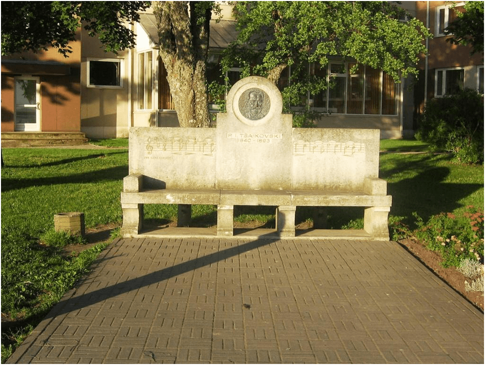 На фото: Мемориальная скамья, посвященная П.И.Чайковскому (Литва).