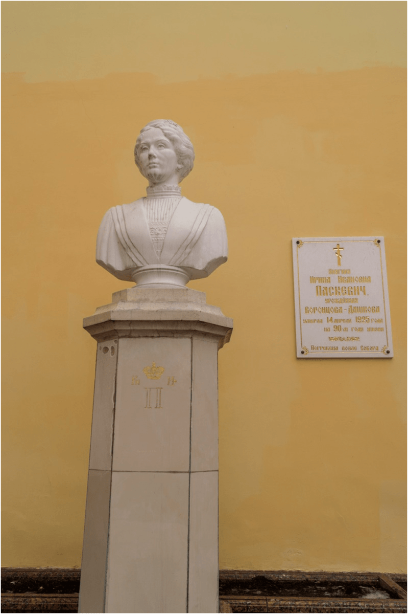 Одним их знаменитых кенотафов в Гомеле можно считать бюст Ирины Паскевич, установленный у входа в Храм Петра и Павла.