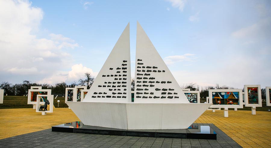 Идеей мемориала было не только напомнить о случившемся, но и рассказать истории тех детей, что прибывали здесь. Центральная часть экспозиции – кораблик с детскими именами, символизирующий надежду. Маленькие подопечные хотели верить в освобождение. Вокруг него – витражи, изображающие детские рисунки. На них сцены мирной жизни, а не война.