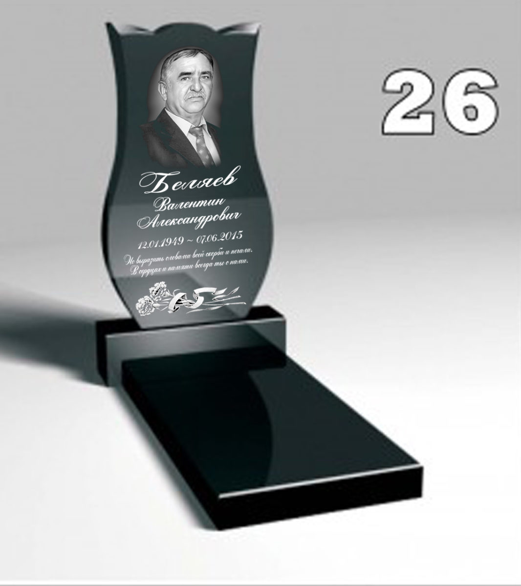 Входит в комплект:стела (как на образце), подставка, цветник, портрет, надпись, гарантия